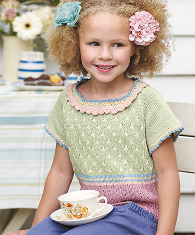 Belle Childrens Short Sleeved Top (Digital Download) Knit this childrens short sleeved top, a design from the Rowan archive that is now available to purchase online. Designed by Marie Wallin, we would suggest using our beautiful soft matton cotton yarn Summerlite 4ply (cotton), this top has an eyelet pattern on the top section, a cable pattern on the bottom section and is finished with crochet edgings.