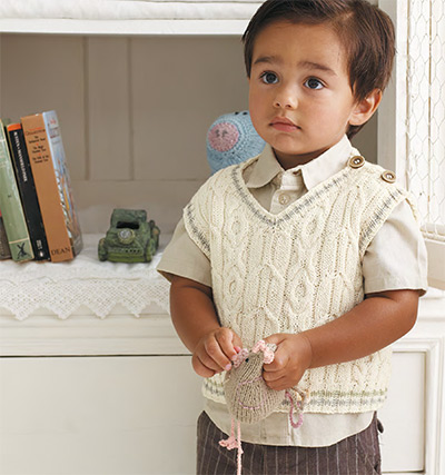 Harry Childrens Slipover (Digital Download) Knit this childrens slipover, a design from the Rowan archive that is now available to purchase online. Designed by Marie Wallin, we would suggest using our beautiful soft matt cotton yarn Summerlite 4ply (cotton), this v neck top has an all over cable pattern and two button opening on the shoulder.