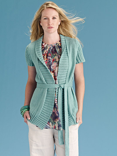 Cherry Ladies Long Line Cardigan (Digital Download) Knit this ladies long line belted cardigan, a design from the Rowan archive that is now available to purchase online. Designed by Martin Storey using our wonderful soft handle cotton yarn Handknit Cotton (cotton), this short sleeved cardigan has a shawl collar and deep rib edgings.