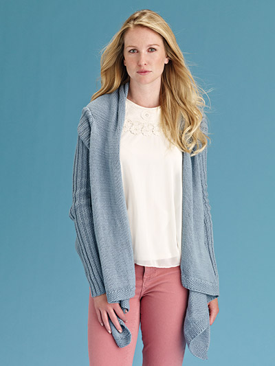 Linden Ladies Waterfall Cardigan (Digital Download) Knit this ladies waterfall style cardigan, a design from the Rowan archive that is now available to purchase online. Designed by Martin Storey using our wonderful soft handle cotton yarn Handknit Cotton (cotton), this cardi has deep ribbed set-in sleeves and a moss stitch border.