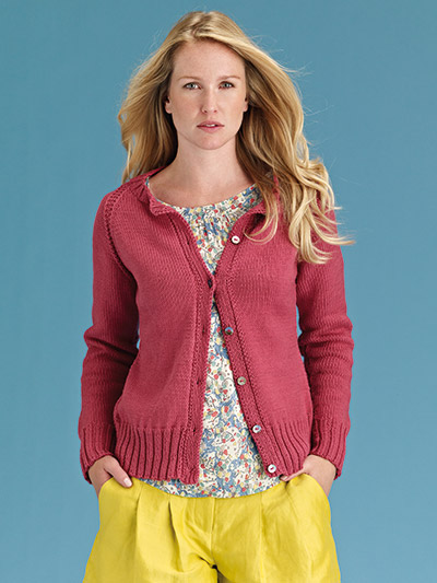 Myrtle Ladies Stocking Stitch Cardigan (Digital Download) Knit this ladies stocking stitch cardigan, a design from the Rowan archive that is now available to purchase online. Designed by Martin Storey using our wonderful soft handle cotton yarn Handknit Cotton (cotton), this round neck cardigan has deep rib edgings and raglan sleeves.