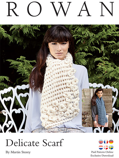Delicate Scarf (Digital Download) Crochet this lace mesh scarf from the Rowan Swarovski Sparkle Collection. Designed by Martin Storey In Kid Classic and crystal embellishment placement designed by the Swarovski team, it features a bead and fringe trim. Avialable in two colourways.