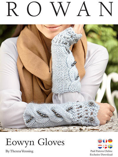 Eowyn Gloves (Digital Download) Knit these cable wristwarmers from the Rowan Sparkle Collection. Designed by Theresa Venning in Kid Classic and the crystal embellishment placements designed by Swarovski, it features a simple lace trim making it suitable for the knitter with a little experience.
