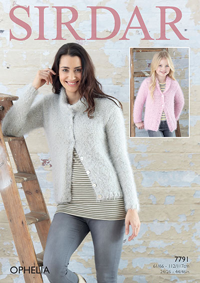7791 - Ladies and Girls Cardigan using Sirdar Ophelia Leaflet with designs for a Ladies and Girls Cardigan using Sirdar Ophelia.