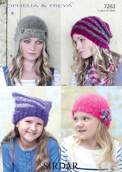 7263 - Hats using Sirdar Ophelia Leaflet with designs for Hats using Sirdar Ophelia.