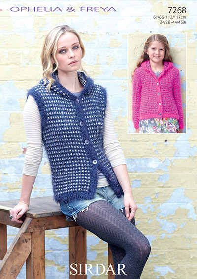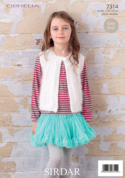7314 - Sleeveless Cardigan using Sirdar Ophelia Leaflet with designs for Sleeveless Cardigan using Sirdar Ophelia.
