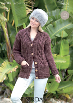 9829 -Cardigan using Big Softie Leaflet with designs for a Cardigan using Sirdar Big Softie.