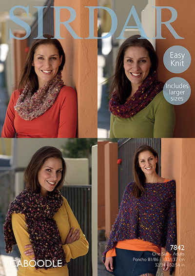7842 - Poncho, Double loop Snood and Scarf using Caboodle Leaflet with designs for a Poncho, Double loop Snood and Scarf using Caboodle.
