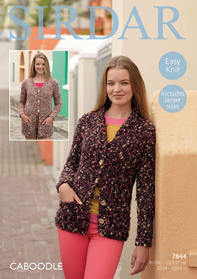 7844 - Shawl collared Cardigan and V Neck Cardigan using Caboodle Leaflet with designs for a Shawl collared Cardigan and V Neck Cardigan using Caboodle.
