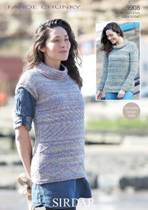 9908 - Sleeveless Tunic and Sleeved Tunic using Faroe Chunky Leaflet with designs for a Sleeveless Tunic and Sleeved Tunic using Sirdar Faroe Chunky.