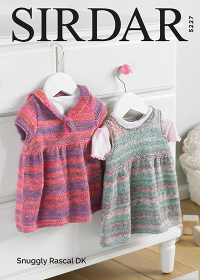 5227 - Pinafore and Dress using Snuggly Rascal DK Leaflet with designs for a Pinafore and Dress using Sirdar Snuggly Rascal DK.