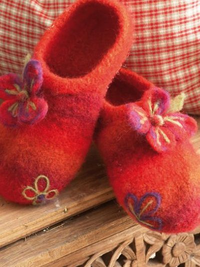 ideas for making felted slippers using Wash+Filz-it! wet felting