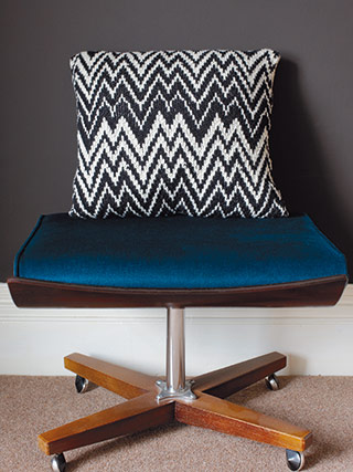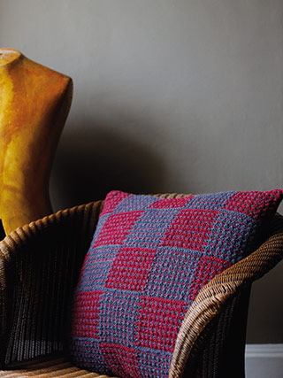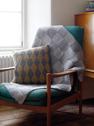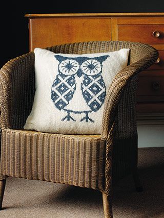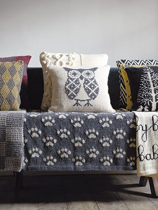 Slip stitch graphic cushions and throw; intarsia owl, enchanted