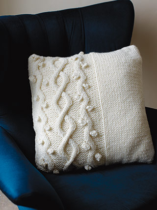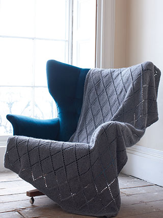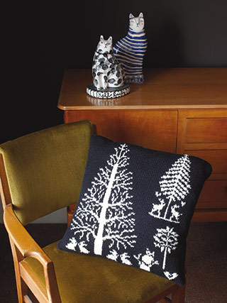 forest cushions; simple to knit diamond lace throw. Designers: •