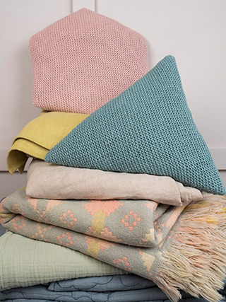 Wool in the form of lovingly knitted fabrics, into the home