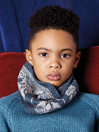 intarsia motifs: A stranded work 'Bug' cowl and 'Cable' cowl,