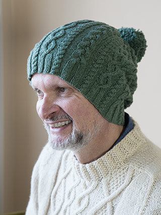 long-line Aran cardigan/jackets, his and hers bobble hats and