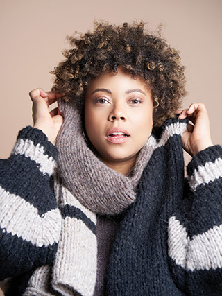 yet cosy, layered knits. Featuring stocking stitch and subtle
