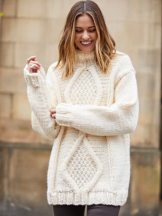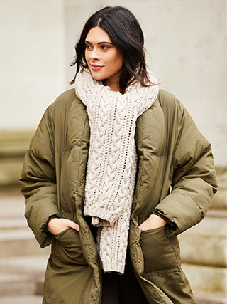 pattern with a modern twist; chic coats in chunky cables, oversized