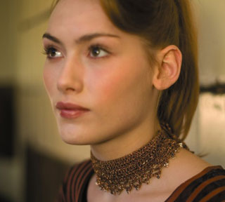cape, a sweet blouse and camisole and a sophisticated beaded